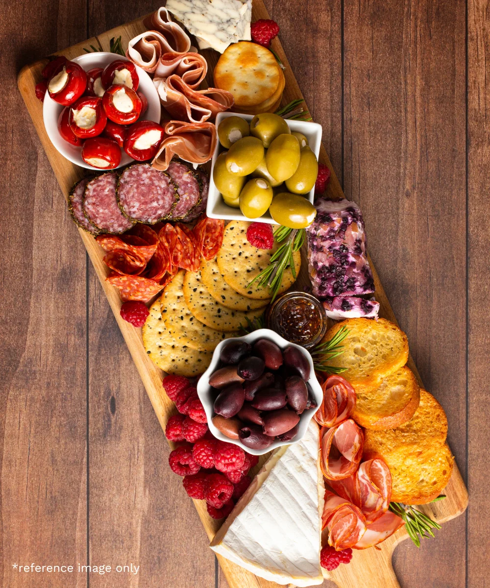 Our Cheese and Charcuterie Board for 10 people offers a delightful selection of flavors, perfect for any gathering. This carefully curated board includes 4 varieties of cheeses, complemented by 3 types of cured meats. To balance the richness, we include fresh market fruit, along with crisp baguette and sourdough toasts. Whether you’re hosting a party or enjoying a casual meal, this board is designed to impress your guests with its variety and quality. it’s an ideal choice for those who appreciate gourmet flavors and a sophisticated touch.