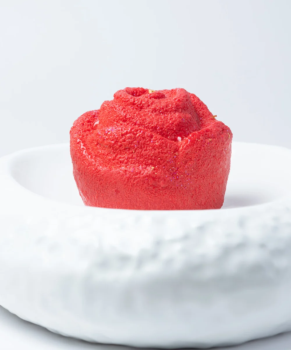 A luxurious raspberry mousse paired with a vibrant raspberry gel, offering a burst of tart elegance. Complemented by a delicate raspberry crispy layer and crowned with a smooth, 31% white chocolate Mont Blanc in a velvety texture, this dessert is a romantic symphony of flavors and finesse.