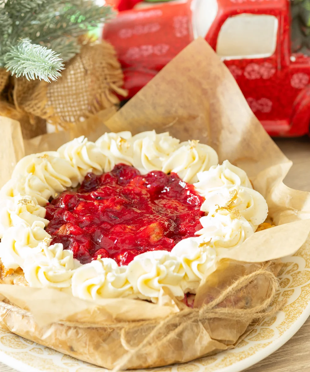 Buttery croissant pudding with vanilla bean cream cheese and red fruits. 8-inch | Serves 10-12.